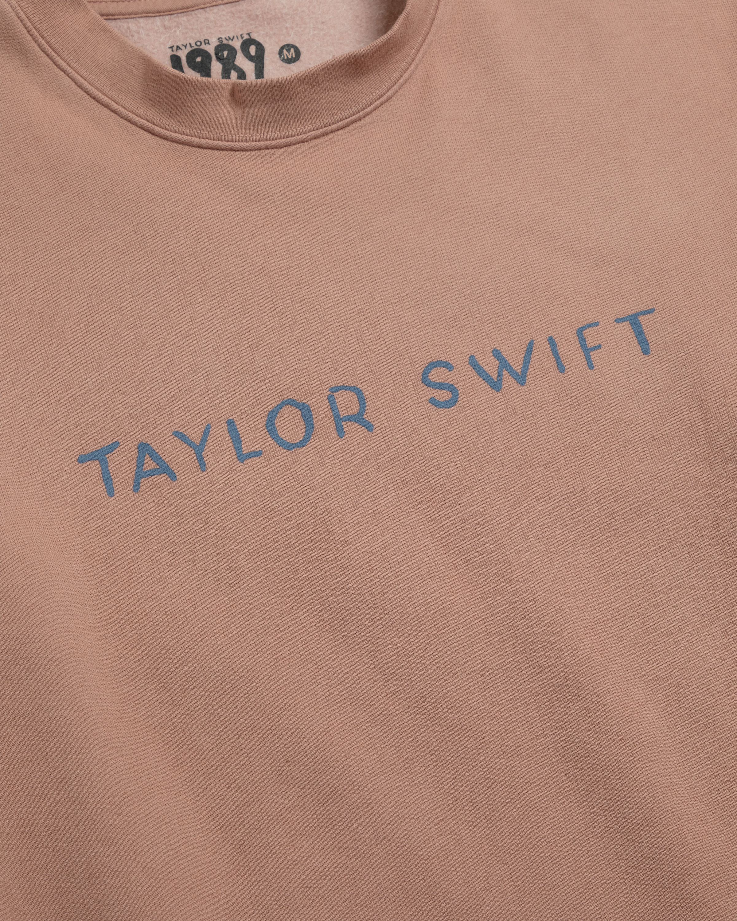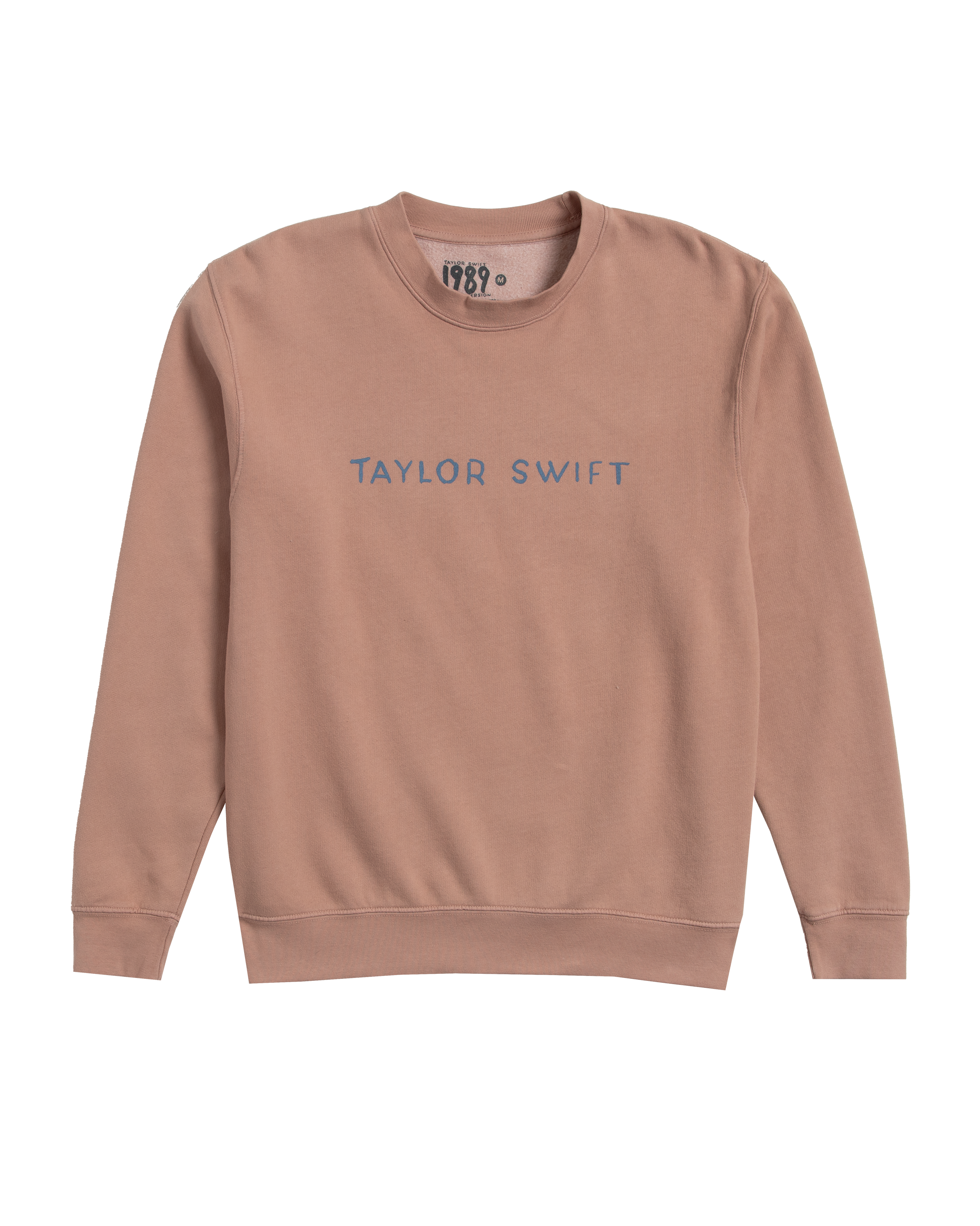 Pink crewneck featuring Taylor Swift printed on front and 1989 (Taylor’s Version) photos with 1989 Taylor’s Version printed on back.