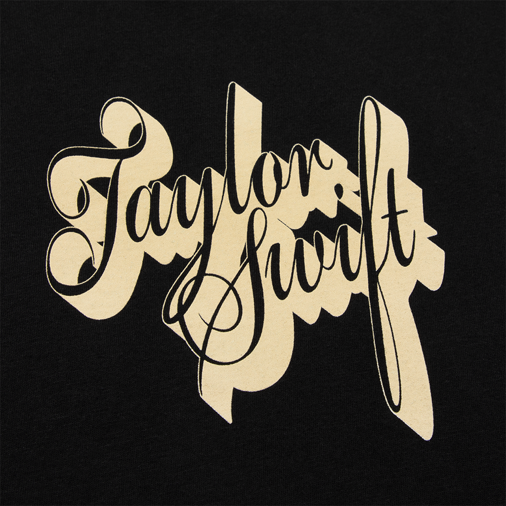 Black t-shirt featuring Taylor Swift printed on front with photos of Taylor Swift and the words Cause I Don’t Know How It Gets Better Than This and Taylor Swift with star and vine design printed on back.