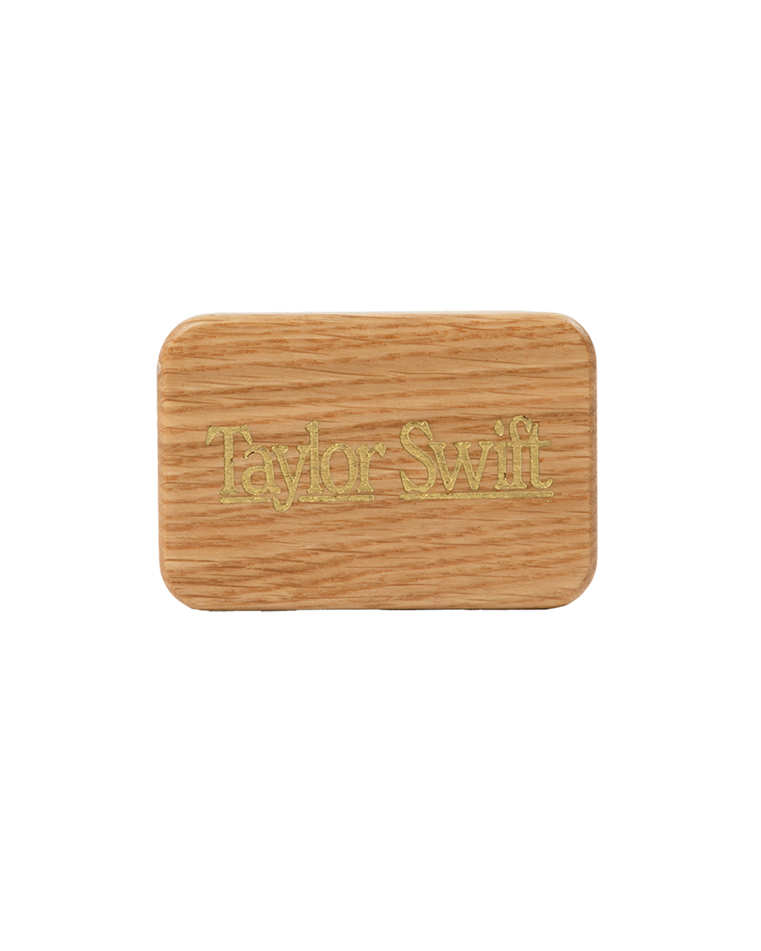 A set of three light blue guitar picks featuring the words Fake a Smile. All I Think About at Night. and He’s the Song in the Car printed on front with gold foil fluer-de-lis design and Taylor Swift printed on back. Includes wooden box featuring Taylor Swift engraved on top.